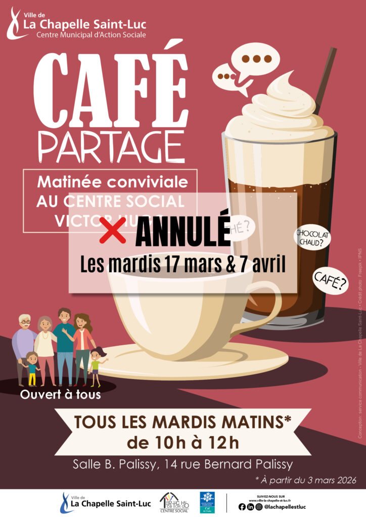 L’animation « Café partage » se voit annulée le mardi 7 avril 2026.